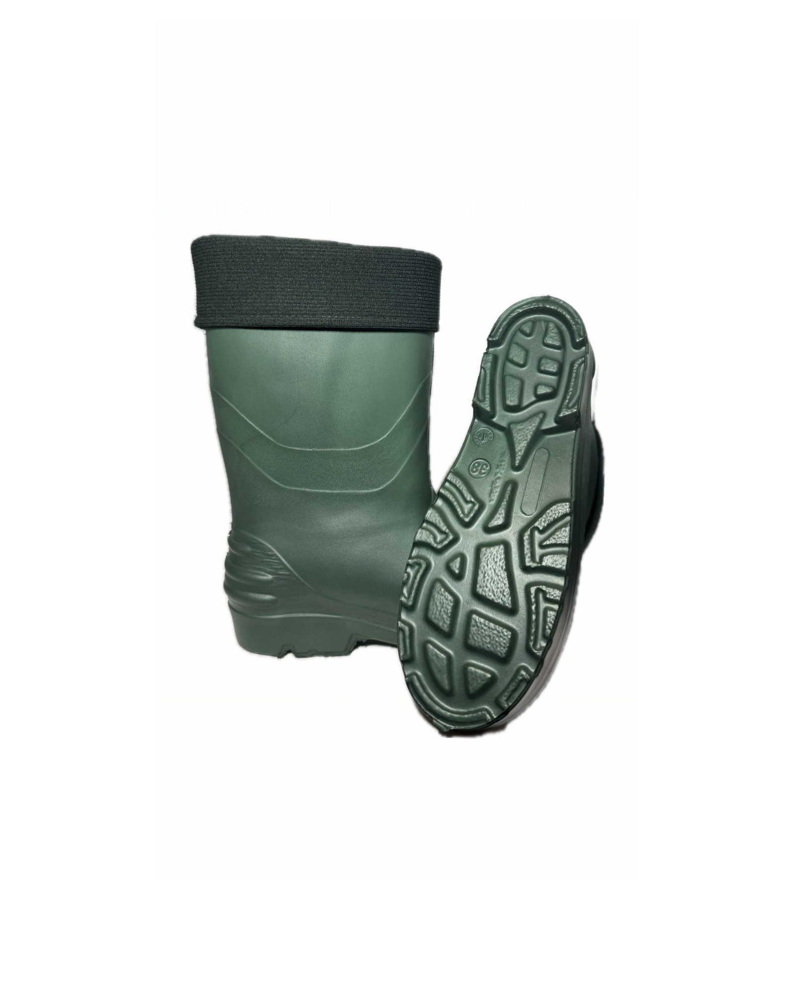 Kolor ciemnozielony, uniwersalny i estetyczny. Wysokość kalosza zapewnia ochronę przed błotem i wilgocią.